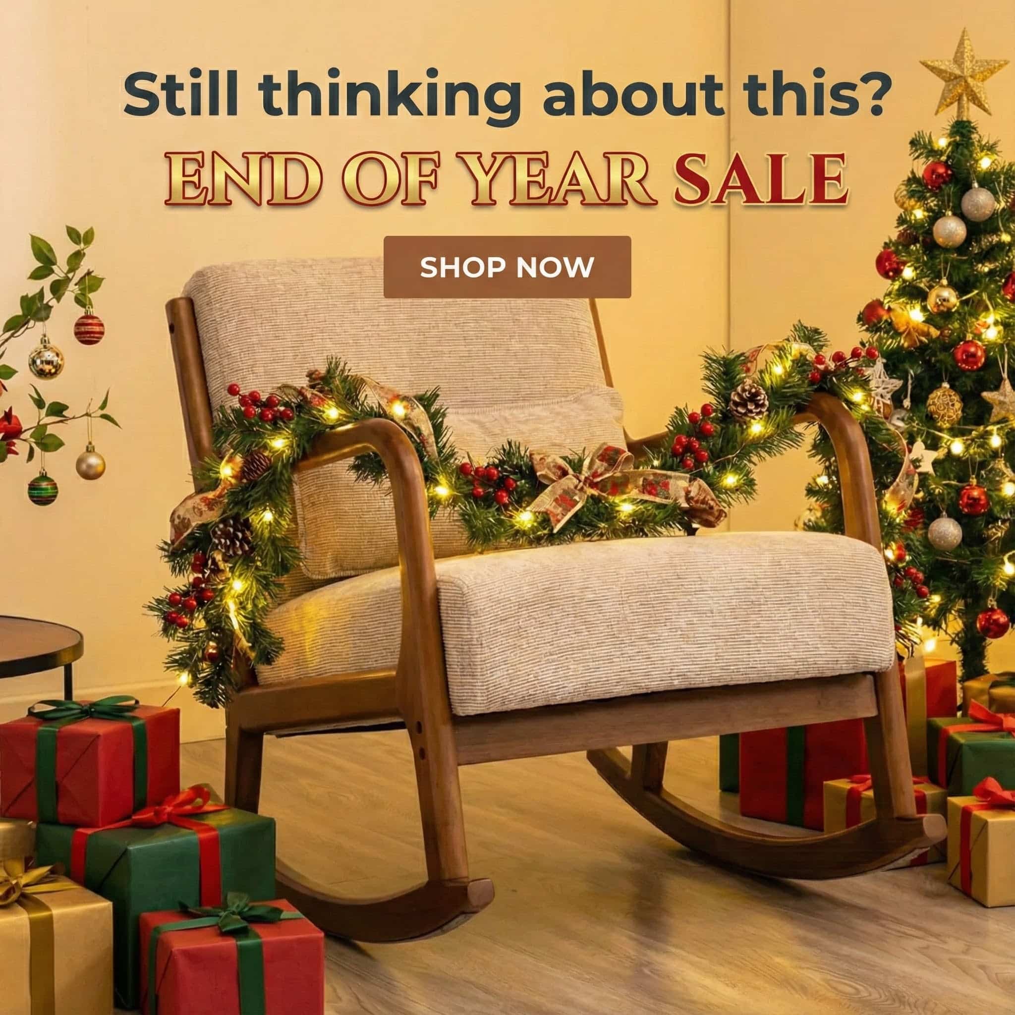 [As a follow-up to the above prompt and its output] now make it festive-themed for an end of year sale. Add the words ‘End of year sale’. Make it extremely festive.