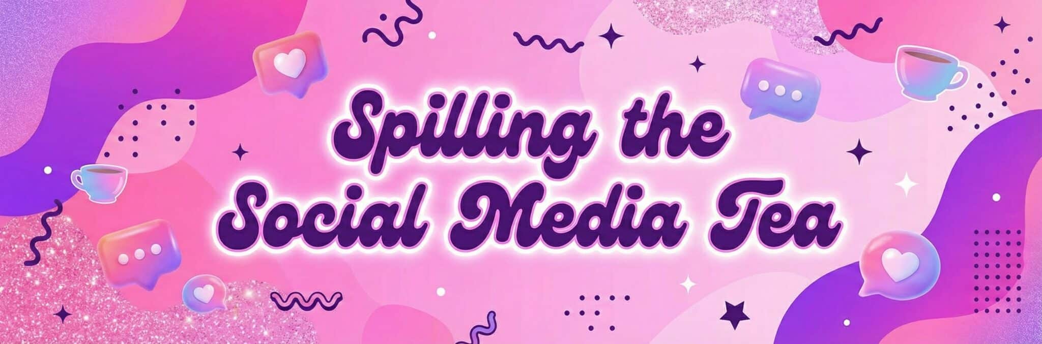 Pink and purple email header in 3:1 ratio featuring modern, trendy, feminine graphics and cool font. Add bold title text: “Spilling the Social Media Tea”.