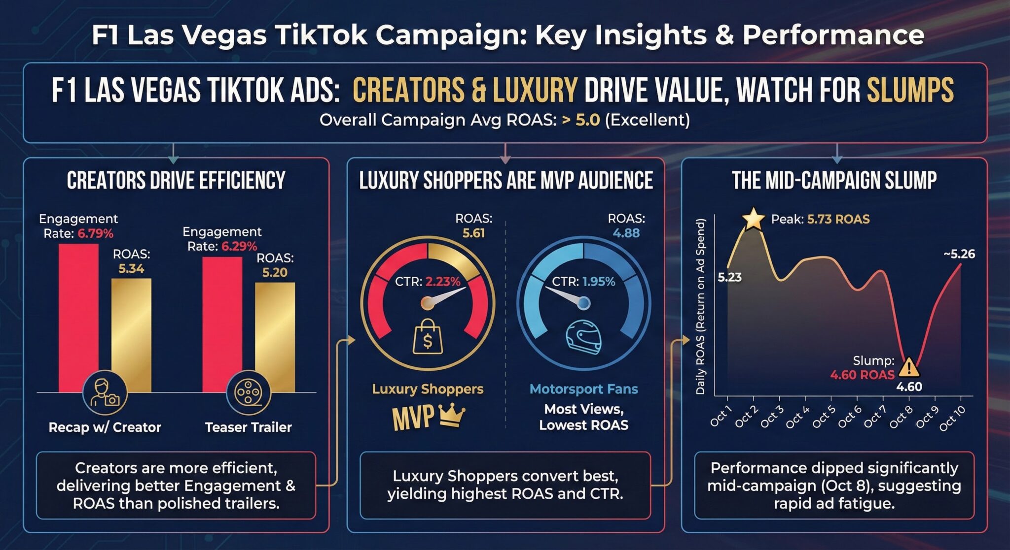 - Analyse the data from this TikTok ad campaign and create a very brief overview of the main insights you can derive from the data.
