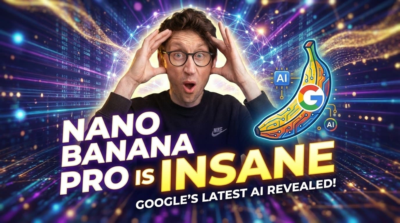 Create a YouTube thumbnail with a cut-out image of me in exactly the pose in this photo. The thumbnail is for a video titled “Nano Banana Pro is Insane”. Make the thumbnail really pop and get the highest possible click-through rate from an audience interested in the latest AI tools and specifically Google’s Nano Banana Pro.