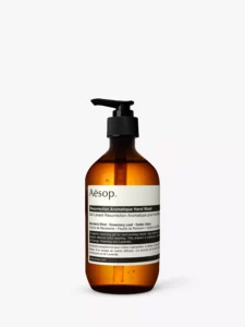 Put this hand soap product on a heritage-style vanity bathroom sink with a Victorian green colour scheme, in the style of an editorial magazine photograph, 16:9